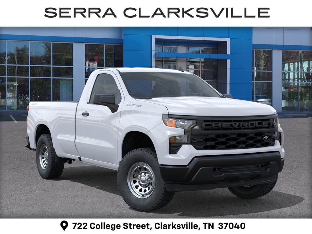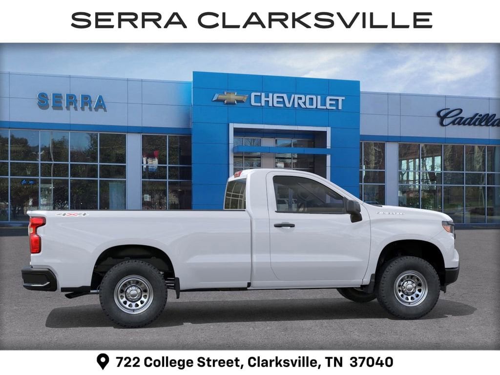 Ask us about special APR rates, lease offers and incentives available on most new 2026 Silverado 1500s. If you're shopping for a new Chevrolet Silverado 1500 near Clarksville, look no further than Serra Chevrolet Clarksville, 722 College Street, Clarksville, TN Call 888-332-5601 or online at SerraClarksville.com. Veteran Owned-Value Driven, Serra Chevy Clarksville is the dealer of choice for Clarksville and the surrounding area. Serra Value Price includes all rebates and discounts available to everyone. Price does not include tax, title, registration, optional equipment purchased at time of sale or processing fee of $895. $1612 - Supplier Discount for Everyone. Exp. 04/30/2026 $4250 - Customer Cash. Exp. 04/30/2026 $500 - Bonus Cash. Exp. 04/30/2026