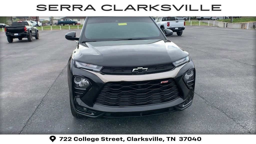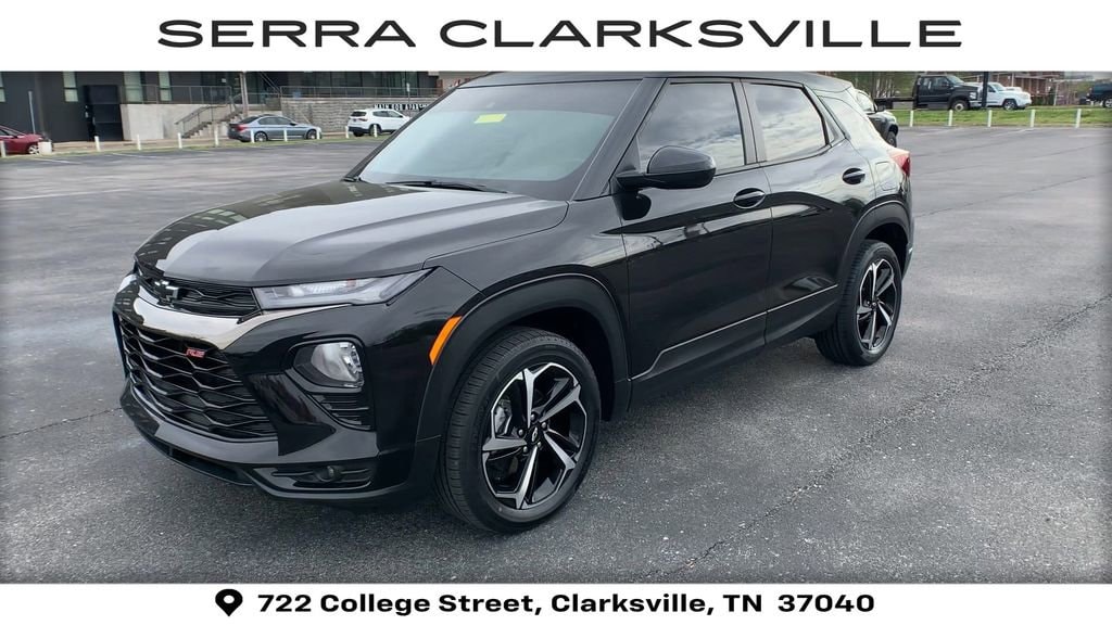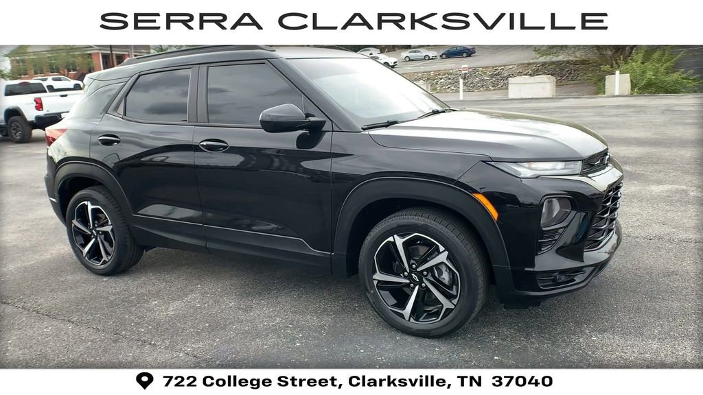 Clean CARFAX. Mosaic Black Metallic 2021 Chevrolet TrailBlazer RSThe Pre-Owned 2021 Chevrolet TrailBlazer RS with 1.3L Ecotec Turbo DOHC SIDI w/VVT at Serra Clarksville. Well equipped: Convenience Package (1 Type-A & 1 Type-C USB Charging-Only Ports, 120-Volt Power Outlet, 8 Diagonal Color Touchscreen Display, Cabin Humidity Sensor, Driver & Front Passenger Illuminated Vanity Mirrors, Inside Rear-View Auto-Dimming Mirror, Single-Zone Auto Climate Control Air Conditioning, and SiriusXM Radio), Driver Confidence Package (Lane Change Alert w/Side Blind Zone Alert, Rear Cross Traffic Alert, and Rear Park Assist), Preferred Equipment Group 1RS, Sun & Liftgate Package (Dual-Pane Panoramic Power Sunroof and Hands-Free Power Programmable Liftgate), Technology Package (4.2 Diagonal Multi-Color Driver Info Center, Adaptive Cruise Control, Bose Premium 7-Speaker Audio System Feature, HD Radio, HD Rear Vision Camera, LED Headlamps, Memory Card Receptacle, Radio: Chevrolet Infotainment 3 Plus System, SiriusXM w/360L, and Wireless Charging), 2-Way Power Driver Lumbar Seat Adjuster, 3.17 Axle Ratio, 4-Way Manual Front Passenger Seat Adjuster, 4-Wheel Disc Brakes, 6 Speakers, 6-Speaker Audio System Feature w/Amplifier, 8-Way Power Driver Seat Adjuster, ABS brakes, Air Conditioning, Alloy wheels, AM/FM radio, Apple CarPlay/Android Auto, Auto High-beam Headlights, Brake assist, Bumpers: body-color, Cloth w/Leatherette Seat Trim, Compass, Delay-off headlights, Driver door bin, Driver vanity mirror, Dual front impact airbags, Dual front side impact airbags, Electronic Stability Control, Emergency communication system: OnStar and Chevrolet connected services capable, Exterior Parking Camera Rear, Flat-Folding Front Passenger Seatback, Front anti-roll bar, Front Bucket Seats, Front Center Armrest, Front fog lights, Front License Plate Bracket, Front reading lights, Front wheel independent suspension, Fully automatic headlights, Heated door mirrors, Heated Driver & Front Passenger Seats, Heated front seats, Illuminated entry, Knee airbag, Leather Shift Knob, Leather steering wheel, Low tire pressure warning, Mosaic Black Metallic Roof, Occupant sensing airbag, Overhead airbag, Overhead console, Panic alarm, Passenger door bin, Passenger vanity mirror, Power door mirrors, Power driver seat, Power steering, Power windows, Radio data system, Radio: Chevrolet Infotainment 3 System, Rear seat center armrest, Rear side impact airbag, Rear window defroster, Rear window wiper, Remote keyless entry, Ride & Handling Suspension, Roof rack: rails only, Security system, Speed control, Split folding rear seat, Spoiler, Steering wheel mounted audio controls, Tachometer, Telescoping steering wheel, Tilt steering wheel, Traction control, Trip computer, Variably intermittent wipers, Wheels: 18 High Gloss Black Machined Aluminum, and Wireless Apple CarPlay/Android Auto.AWD 1.3L Ecotec Turbo DOHC SIDI w/VVT 9-Speed AutomaticRecent Arrival! Odometer is 40923 miles below market average! 26/30 City/Highway MPGAwards:* 2021 IIHS Top Safety Pick+ * Ward's 10 Best Engines and Propulsion Systems