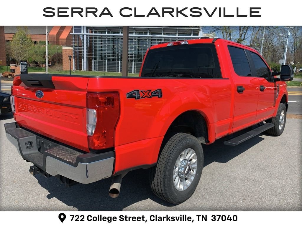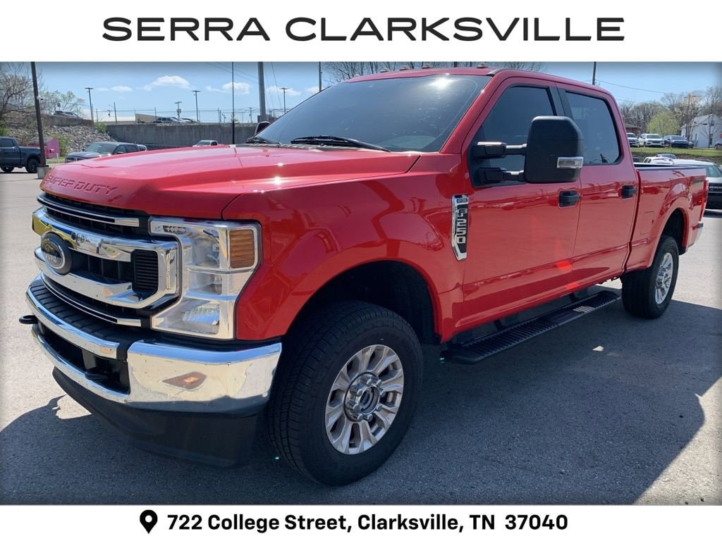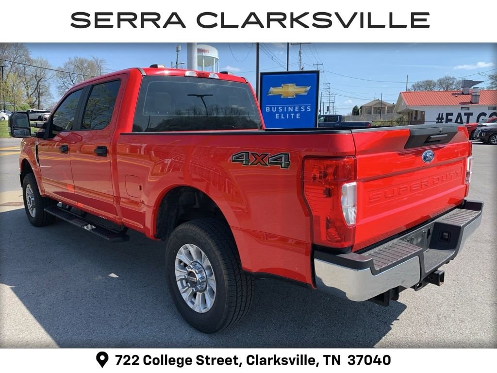 The Pre-Owned 2022 Ford F-250SD XL with 6.2L V8 EFI SOHC 16V Flex Fuel at Serra Clarksville. Well equipped: 5th Wheel/Gooseneck Hitch Prep Package, GVWR: 10,000 lb Payload Package, Order Code 600A, Power Equipment Group (Advanced Security Pack, Power Front & Rear Seat Windows, Power Locks, Power Tailgate Lock, Remote Keyless Entry, and Trailer Tow Mirrors w/Power Heated Glass), STX Appearance Package (Bright Chrome Grille, Bright Chrome Hub Covers & Center Ornaments, Chrome Front Bumper, Chrome Rear Step Bumper, Steering Wheel-Mounted Cruise Control, and Wheels: 18 Sparkle Silver Painted Cast Aluminum), 4WD, 110V/400W Outlet, 17 Argent Painted Steel Wheels, 4 Speakers, 4-Wheel Disc Brakes, ABS brakes, Air Conditioning, AM/FM radio, AM/FM Stereo w/MP3 Player, BoxLink, Brake assist, Compass, Delay-off headlights, Dual front impact airbags, Dual front side impact airbags, Electronic Stability Control, Emergency communication system: 911 Assist, Exterior Parking Camera Rear, Front & Rear Wheel Well Liners (Pre-Installed), Front anti-roll bar, Front Center Armrest w/Storage, Front reading lights, Fully automatic headlights, Gooseneck Hitch Kit (Pre-Installed), HD Vinyl 40/20/40 Split Bench Seat, LED Roof Clearance Lights, Low tire pressure warning, Outside temperature display, Overhead airbag, Overhead console, Passenger vanity mirror, Platform Running Boards, Power steering, Rear reading lights, Rear step bumper, Remote Start System, Split folding rear seat, Steering wheel mounted audio controls, SYNC 3 Communications & Entertainment System, SYNC Communications & Entertainment System, Tachometer, Telescoping steering wheel, Tilt steering wheel, Tough Bed Spray-In Bedliner, Traction control, Trailer Brake Controller, Trip computer, Upfitter Switches (6), and Variably intermittent wipers.