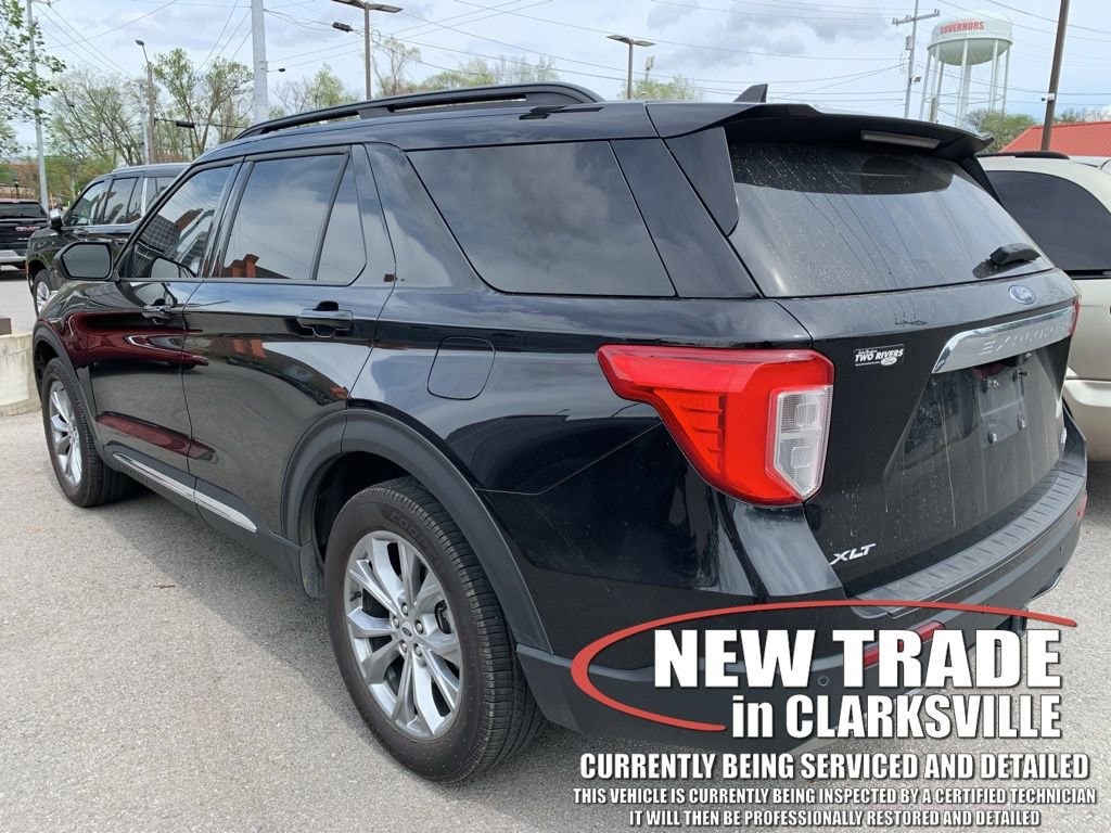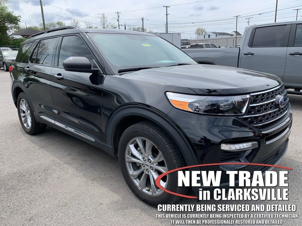 The Pre-Owned 2023 Ford Explorer XLT with 2.3L EcoBoost I-4 at Serra Clarksville. Well equipped: Class IV Trailer Tow Package, Equipment Group 202A (Acoustic-Laminated Front Side Windows, Heated ActiveX Captain's Chairs, Heated Steering Wheel, LED Fog Lamps, Remote Start System, and SecuriCode Keyless Entry Keypad), Ford Co-Pilot360 Assist+ (Evasive Steering Assist, Intelligent Adaptive Cruise Control, Speed Sign Recognition, and Voice-Activated Touchscreen Navigation System), 4WD, 20 Premium Painted Aluminum Wheels, 3.58 Non-Limited-Slip Rear Axle Ratio, 3rd row seats: bench, 4-Wheel Disc Brakes, 4G LTE Wi-Fi Hotspot Credit, 6 Speakers, ABS brakes, Air Conditioning, Alloy wheels, AM/FM radio: SiriusXM, AM/FM Stereo, Auto High-beam Headlights, Automatic temperature control, Brake assist, Bumpers: body-color, Compass, Delay-off headlights, Driver door bin, Driver vanity mirror, Dual front impact airbags, Dual front side impact airbags, Electronic Stability Control, Emergency communication system: SYNC 3 911 Assist, Exterior Parking Camera Rear, FordPass Connect, Four wheel independent suspension, Front & Second Row Floor Liners (16B), Front anti-roll bar, Front Bucket Seats, Front Center Armrest, Front dual zone A/C, Front reading lights, Fully automatic headlights, Heated door mirrors, Heated front seats, Heated Unique Cloth Captain's Chairs, Illuminated entry, Knee airbag, Leather steering wheel, Low tire pressure warning, Occupant sensing airbag, Outside temperature display, Overhead airbag, Overhead console, Panic alarm, Passenger door bin, Passenger vanity mirror, Power door mirrors, Power driver seat, Power Liftgate, Power passenger seat, Power steering, Power windows, Rear air conditioning, Rear anti-roll bar, Rear Auxiliary Controls Credit, Rear reading lights, Rear window defroster, Rear window wiper, Remote keyless entry, Roof rack: rails only, Security system, Speed control, Speed-sensing steering, Speed-Sensitive Wipers, Split folding rear seat, Spoiler, Steering wheel mounted audio controls, SYNC 3 Communications & Entertainment System, SYNC 3/Apple CarPlay/Android Auto, Tachometer, Telescoping steering wheel, Tilt steering wheel, Traction control, Trip computer, Twin Panel Moonroof, Variably intermittent wipers, and Wheels: 18 5-Spoke Silver-Painted Aluminum.