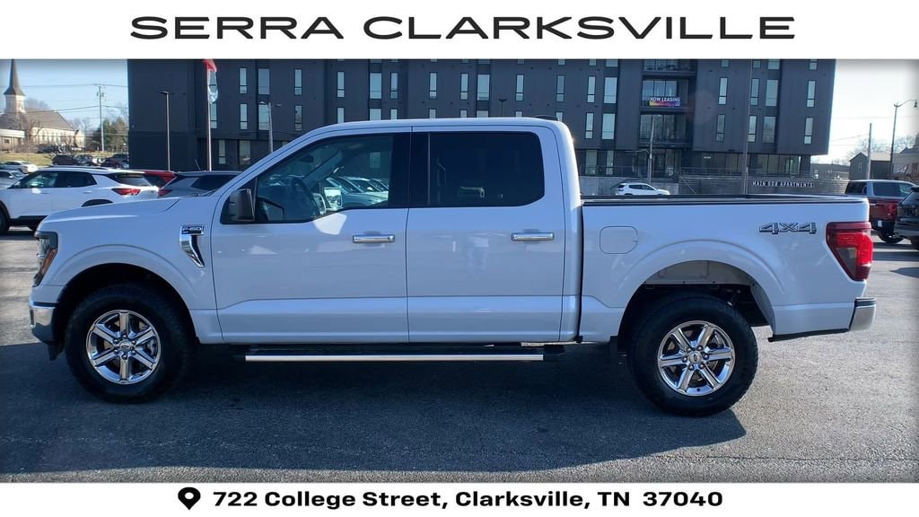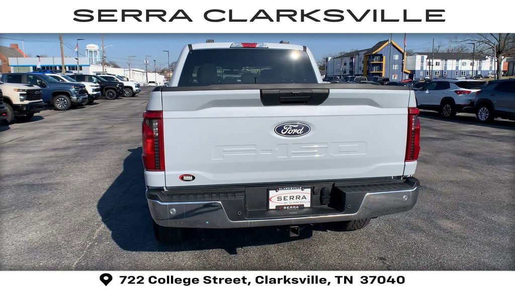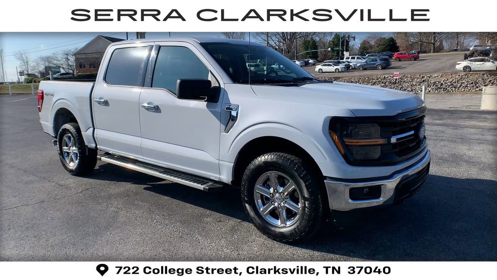 The Pre-Owned 2025 Ford F-150 XLT with 5.0L V8 at Serra Clarksville. Well equipped: Equipment Group 301A Standard (6 Angular Bright Anodized Step Bar, Black Painted Grille w/Chrome Center Bar, Chrome Door & Tailgate Handles, Chrome Single-Tip Exhaust, Cloth 40/20/40 Front Seat w/Console, Dual-Zone Electronic Automatic Temperature Control, and Wrapped Steering Wheel), 4WD, 3.31 Axle Ratio, 4-Wheel Disc Brakes, 6 Speakers, ABS brakes, Air Conditioning, Alloy wheels, AM/FM radio: SiriusXM with 360L, Auto High-beam Headlights, Brake assist, Bumpers: chrome, Chrome wheels, Cloth 40/20/40 Front Seat, Compass, Delay-off headlights, Driver door bin, Driver vanity mirror, Dual front impact airbags, Dual front side impact airbags, Electronic Stability Control, Emergency communication system: SYNC 4 911 Assist, Front anti-roll bar, Front Center Armrest, Front fog lights, Front License Plate Bracket, Front reading lights, Front wheel independent suspension, Fully automatic headlights, Heated door mirrors, Illuminated entry, Internet access capable: FordPass Connect 5G, Low tire pressure warning, Occupant sensing airbag, Outside temperature display, Overhead airbag, Overhead console, Panic alarm, Passenger door bin, Passenger vanity mirror, Power door mirrors, Power steering, Power windows, Radio data system, Radio: AM/FM Stereo w/SiriusXM 360L, Rear Parking Sensors, Rear reading lights, Rear step bumper, Rear window defroster, Remote keyless entry, Security system, Speed control, Split folding rear seat, Steering wheel mounted audio controls, SYNC 4 w/Enhanced Voice Recognition, Tachometer, Telescoping steering wheel, Tilt steering wheel, Traction control, Trip computer, Variably intermittent wipers, Voltmeter, and Wheels: 18 Chrome-Like PVD.