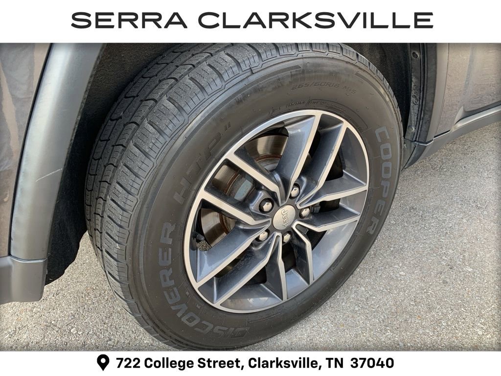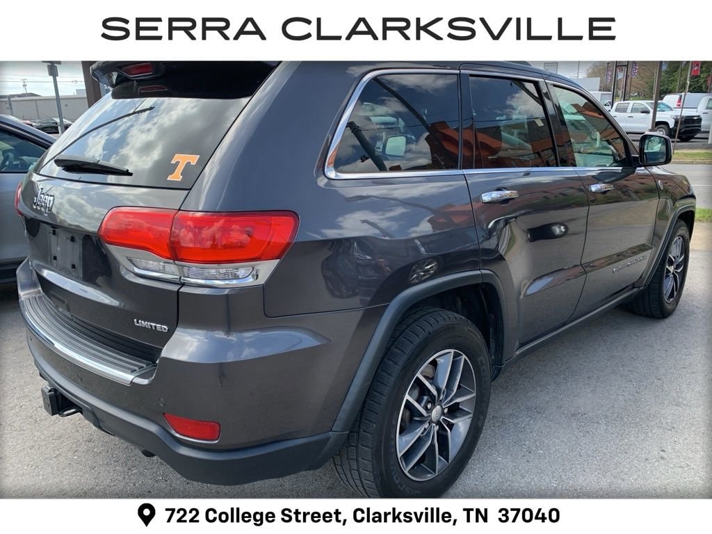 The Pre-Owned 2018 Jeep Grand Cherokee Limited with 3.6L V6 24V VVT at Serra Clarksville. Well equipped: Off-Road Adventure II (230MM Rear Axle, Electronic Limited Slip Differential Rear Axle, Fuel Tank Skid Plate Shield, Normal Duty Suspension - Increased Travel, Quadra-Drive II 4WD System, Quadra-Lift Air Suspension, Selec-Speed Control, Steering Wheel Mounted Shift Control, Tow Hooks, and Trail Rated Badge), Quick Order Package 2BH, Trailer Tow Group IV (7 & 4 Pin Wiring Harness, Class IV Receiver Hitch, Heavy-Duty Engine Cooling, and Rear Load Leveling Suspension), 4WD, 1-Year SiriusXM Guardian Trial, 3.45 Rear Axle Ratio, 4-Wheel Disc Brakes, 5-Year SiriusXM Traffic Service, 5-Year SiriusXM Travel Link Service, 506 Watt Amplifier, 6 Speakers, 8.4 Touchscreen Display, 9 Amplified Speakers w/Subwoofer, ABS brakes, Active Noise Control System, Air Conditioning, Alloy wheels, AM/FM radio: SiriusXM, Anti-whiplash front head restraints, Apple CarPlay, Apple CarPlay/Android Auto, Audio memory, Auto-dimming door mirrors, Auto-Dimming Exterior Passenger Mirror, Auto-dimming Rear-View mirror, Automatic temperature control, Blind Spot & Cross Path Detection, Brake assist, Bumpers: body-color, Chrome Exterior Mirrors, Compass, Delay-off headlights, Driver door bin, Driver vanity mirror, Dual front impact airbags, Dual front side impact airbags, Electronic Stability Control, Engine Oil Cooler, For Details Visit DriveUconnect.com, Four wheel independent suspension, Front anti-roll bar, Front Bucket Seats, Front Center Armrest w/Storage, Front dual zone A/C, Front fog lights, Front reading lights, Fully automatic headlights, Garage door transmitter, Google Android Auto, GPS Antenna Input, GPS Navigation, HD Radio, Heated door mirrors, Heated front seats, Heated rear seats, Heated steering wheel, Illuminated entry, Integrated Voice Command w/Bluetooth, Knee airbag, Leather Shift Knob, Leather Trimmed Bucket Seats, Low tire pressure warning, Manufacturer's Statement of Origin, Memory seat, Normal Duty Suspension, Occupant sensing airbag, Outside temperature display, Overhead airbag, Overhead console, Panic alarm, ParkView Rear Back-Up Camera, Passenger door bin, Passenger vanity mirror, Power door mirrors, Power driver seat, Power Liftgate, Power passenger seat, Power steering, Power Sunroof (DISC), Power windows, Radio data system, Radio: Uconnect 4 w/7 Display, Radio: Uconnect 4C Nav w/8.4 Display, Rear anti-roll bar, Rear reading lights, Rear seat center armrest, Rear window defroster, Rear window wiper, Remote keyless entry, Roof rack: rails only, Security system, SiriusXM Traffic Plus, SiriusXM Travel Link, Speed control, Speed-Sensitive Wipers, Split folding rear seat, Spoiler, Steering wheel mounted audio controls, Tachometer, Telescoping steering wheel, Tilt steering wheel, Traction control, Trip computer, Turn signal indicator mirrors, USB Host Flip, Variably intermittent wipers, and Wheels: 18 x 8.0 Tech Gray AluminuM.
