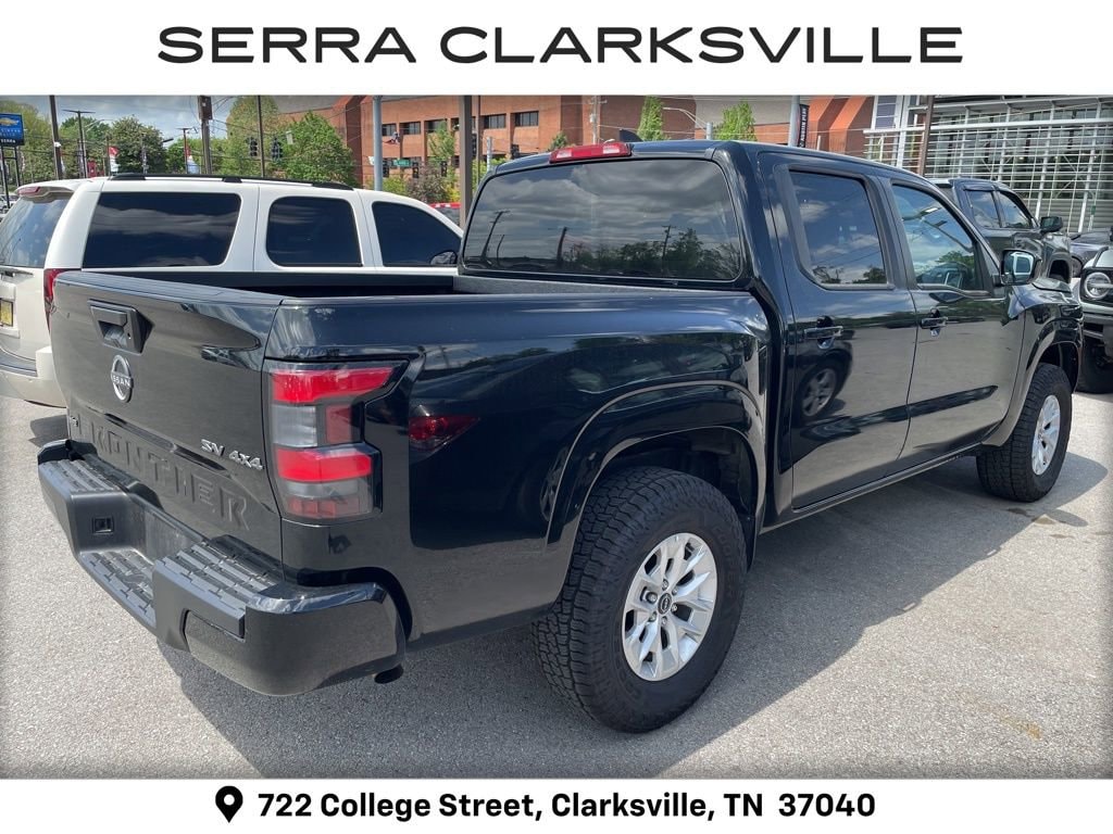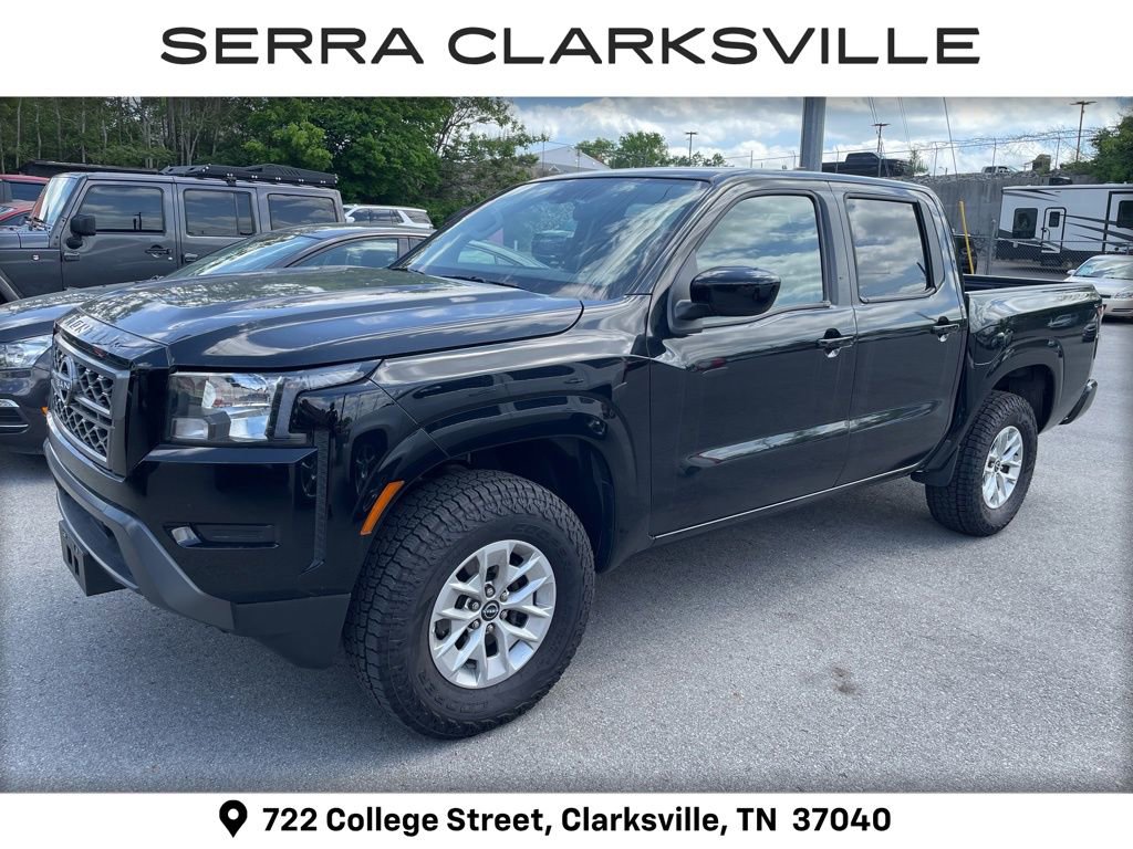 CARFAX One-Owner. Clean CARFAX. Super Black 2024 Nissan Frontier SVThe Pre-Owned 2024 Nissan Frontier SV with 3.8L DI DOHC 24V V6 at Serra Clarksville. Well equipped: 4WD, 16 Alloy Wheels, 3.692 Axle Ratio, 4-Wheel Disc Brakes, 6 Speakers, ABS brakes, Air Conditioning, Alloy wheels, AM/FM radio: SiriusXM, Anti-whiplash front head restraints, Apple CarPlay/Android Auto, Brake assist, Bumpers: body-color, Carpeted Floor Mats, Delay-off headlights, Driver door bin, Driver vanity mirror, Dual front impact airbags, Dual front side impact airbags, Electronic Stability Control, Fender Premium Audio System w/10 Speakers, Front anti-roll bar, Front Bucket Seats, Front Center Armrest, Front reading lights, Front wheel independent suspension, Fully automatic headlights, Illuminated entry, Knee airbag, Low tire pressure warning, Occupant sensing airbag, Overhead airbag, Panic alarm, Passenger door bin, Passenger vanity mirror, Power door mirrors, Power driver seat, Power steering, Power windows, Premium Cloth Seat Trim, Radio data system, Radio: SXM/AM/FM/AUX/USB Audio System, Rear anti-roll bar, Rear seat center armrest, Rear side impact airbag, Rear step bumper, Remote keyless entry, Security system, Speed control, Speed-sensing steering, Split folding rear seat, Steering wheel mounted audio controls, Tachometer, Tilt steering wheel, Traction control, Trip computer, Variably intermittent wipers, and Voltmeter.4WD 3.8L DI DOHC 24V V6 9-Speed Automatic with OverdriveRecent Arrival!